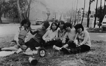 昭52 神輿リレー終了後の女子学生